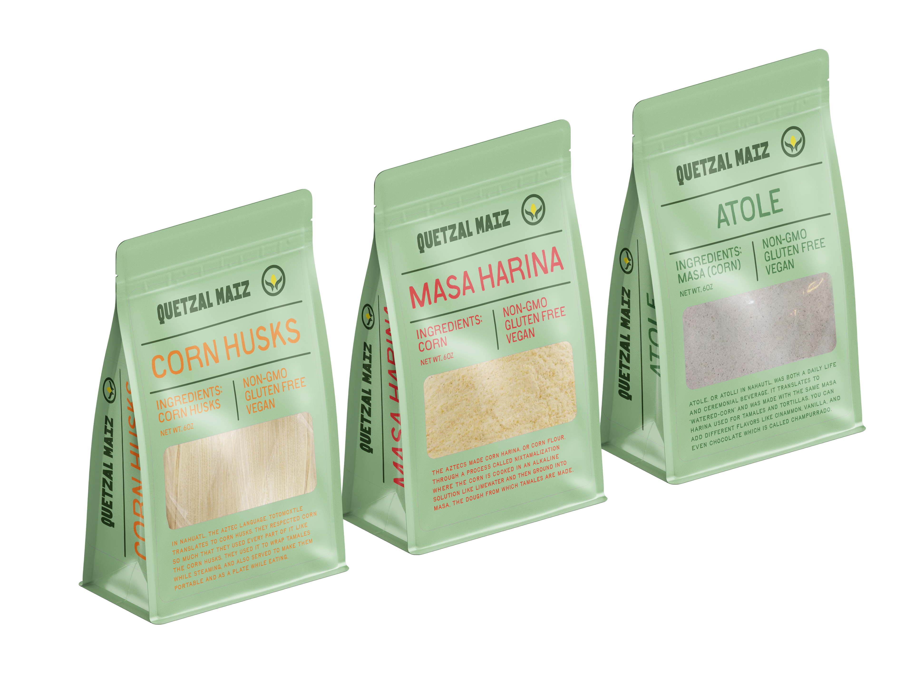 Packaging and book illustrations for a brand that honors the history of Aztec maize.